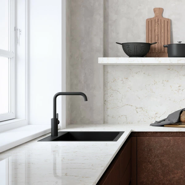 Kald start: Armaturet gir kun kaldt vann med midtstilling, for sparing av varmtvannsforbruk.