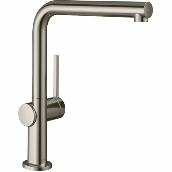 Stilrent og slankt kjøkkenarmatur fra Hansgrohe M54-serien med en fin rustfritt stål overflate. Med L-tuten er armaturet ekstra velegnet til å fylle store gryter uten problemer. L-tuten passer med de myke linjene inn i ethvert kjøkken