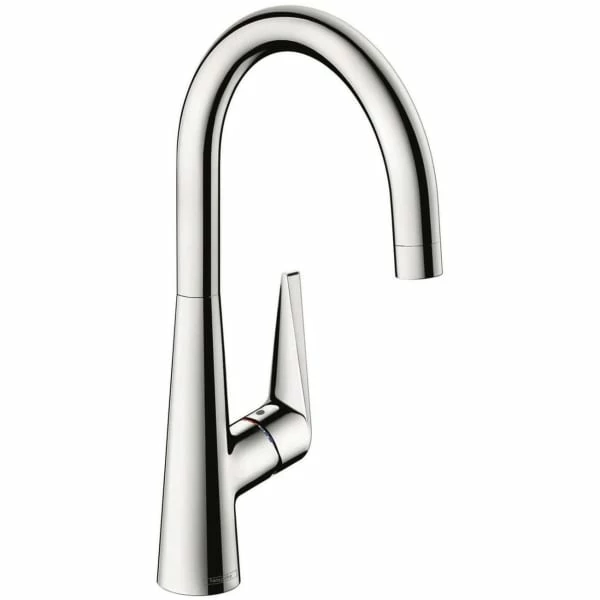 Kvaliteterne i den ergonomiske Talis S kjøkkenarmaturserie er pakket inn i myke avrundinger og presise overgange som går hånd i hånd med nøye utarbeidet teknologi. Talis armaturet er særdeles praktisk og brukervennligt med sin høye, bevegelige tut, som sammen med ComfortZonen på 260 mm sikrer total bevegelsesfrihet og komfort i kjøkkenet, samtidig med at arbeidsområdet omkring vasken blir betydeligt større. Armaturets normalstråle gir en mykere, fyldigere og lettere vannstråle enn tradisjonelle armaturer, da det innstrømmende vann blandes med luft, og med Quick Clean perlatoren kan luftblanderen lett holdes kalkfri.