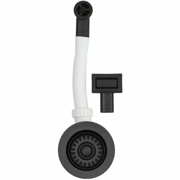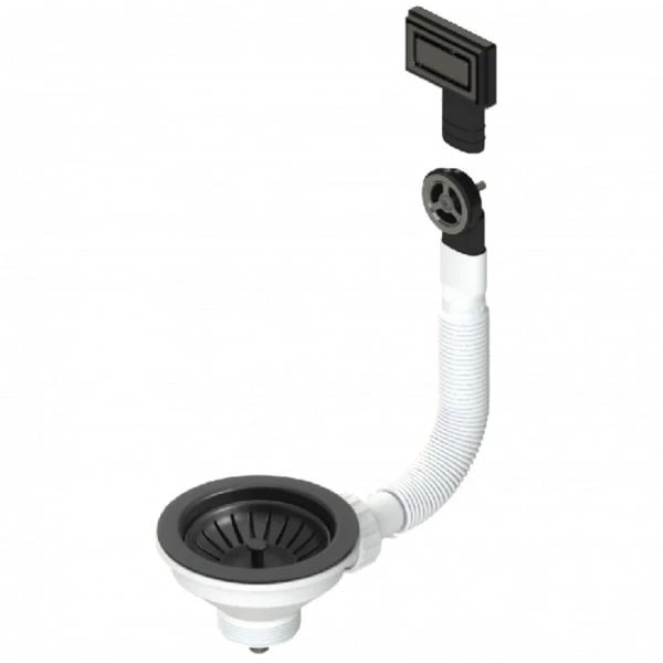Det medfølger også en fleksibel overløpsslange, samt en kurveventil som er fremstillet i rustfritt stål med en trykkpåført PVD overflatebehandling i sort. PVD er en særlig overflatebehandling, som gjør kurveventilens overflate særlig slitesterk.