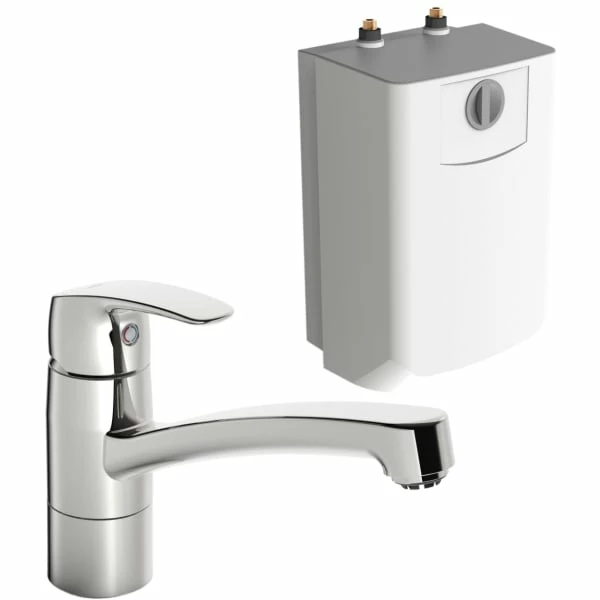 Kombinasjonen med kjøkkenbatteri og varmtvannsbereder er perfekt til sommethuset, garasjen o.l. hvor det ikke er tilført varmtvann. Installasjonen krever fast tilførsel av kaldt vann og elektrisitet. For å unngå frostsprengning bør armaturet og varmtvannsberederen tømmes ved risiko for frost.