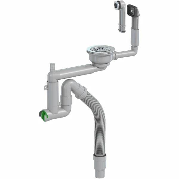 SmartLoc-vannlåsen leveres med rør og kurvventil, samt to forskjellige overløp – et rundt og et firkantet.