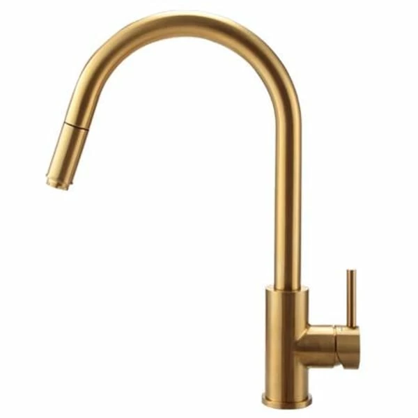 Kjøkkenbatteri i tidløs design. Med høy tut og uttrekkbart munnstykke er det lett å skylle vasken eller rengjøre kjøkkenbenken.